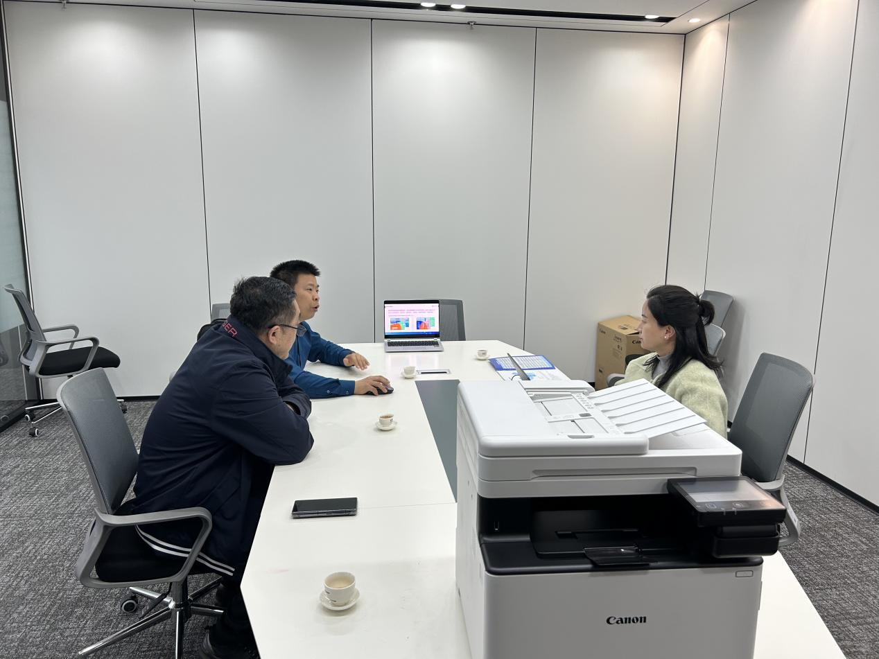 陈雁(右一)代表四川省油气勘探开发智能化工程研究中心与奥达测控董事长及总经理进行技术沟通