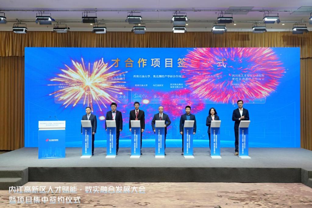 为深入贯彻落实党的二十大和二十届三中全会精神,持续推动创新链、产业链、资金链、人才链深度融合,内江高新区于2024年11月15日举办了人才赋能·数实融合发展大会暨项目集中签约仪式。活动由内江高新技术产业开发区管理委员会主办,四川省大数据发展研究会、内江市各级相关部门参与,已在内江高新区落地的企业及高校科研机构均参加了此次活动。