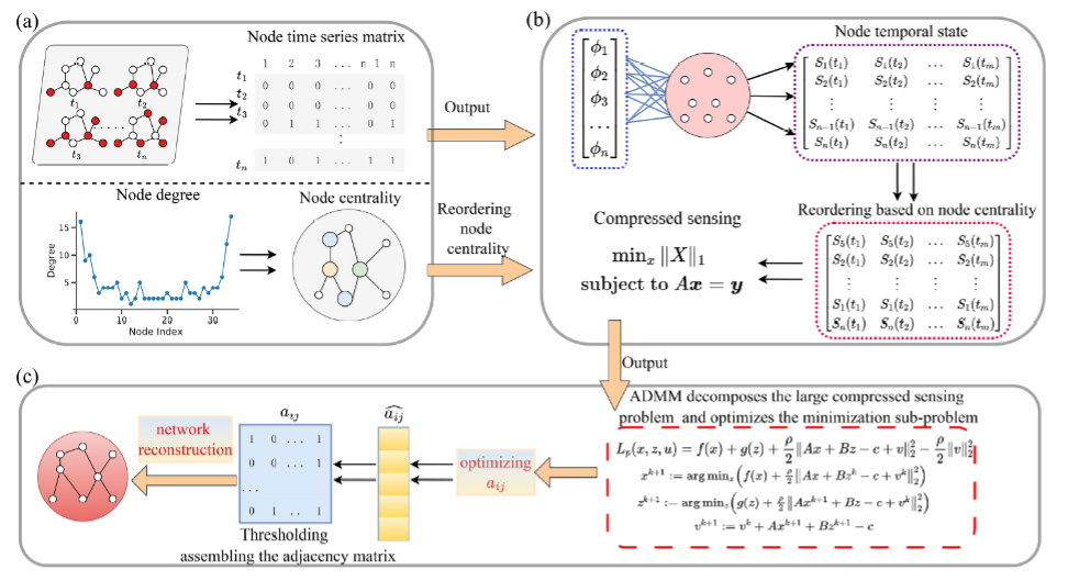 硕士生刘江华在《中国科学:信息科学》发表学术论文“基于节点中心性排序和交替乘子法的网络重构”。论文提出了一种基于节点中心性排序和交替乘子法的网络重构算法。将所提算法相比于现有代表性重构方法, 提升了重构精度, 减少了重构时间, 具有更高的抗噪声鲁棒性。该研究提升了网络重构算法应用于大规模网络的准确性、适用性和可靠性, 并可在未来扩展到不同类型约束的加权网络重构中。论文链接:http://engine.scichina.com/doi/10.1360/SSI-2024-0276