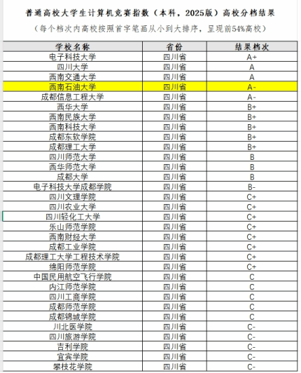 2025年5月19日,全国高等学校计算机教育研究会、教师教学发展研究国家级虚拟教研室和浙大城市学院高等教育数智评价研究中心联合发布普通高校大学生计算机竞赛指数(本科,2025版,以下简称“2025版计算机竞赛指数”),我校获评A-,全国排名第50,全省排名第4。