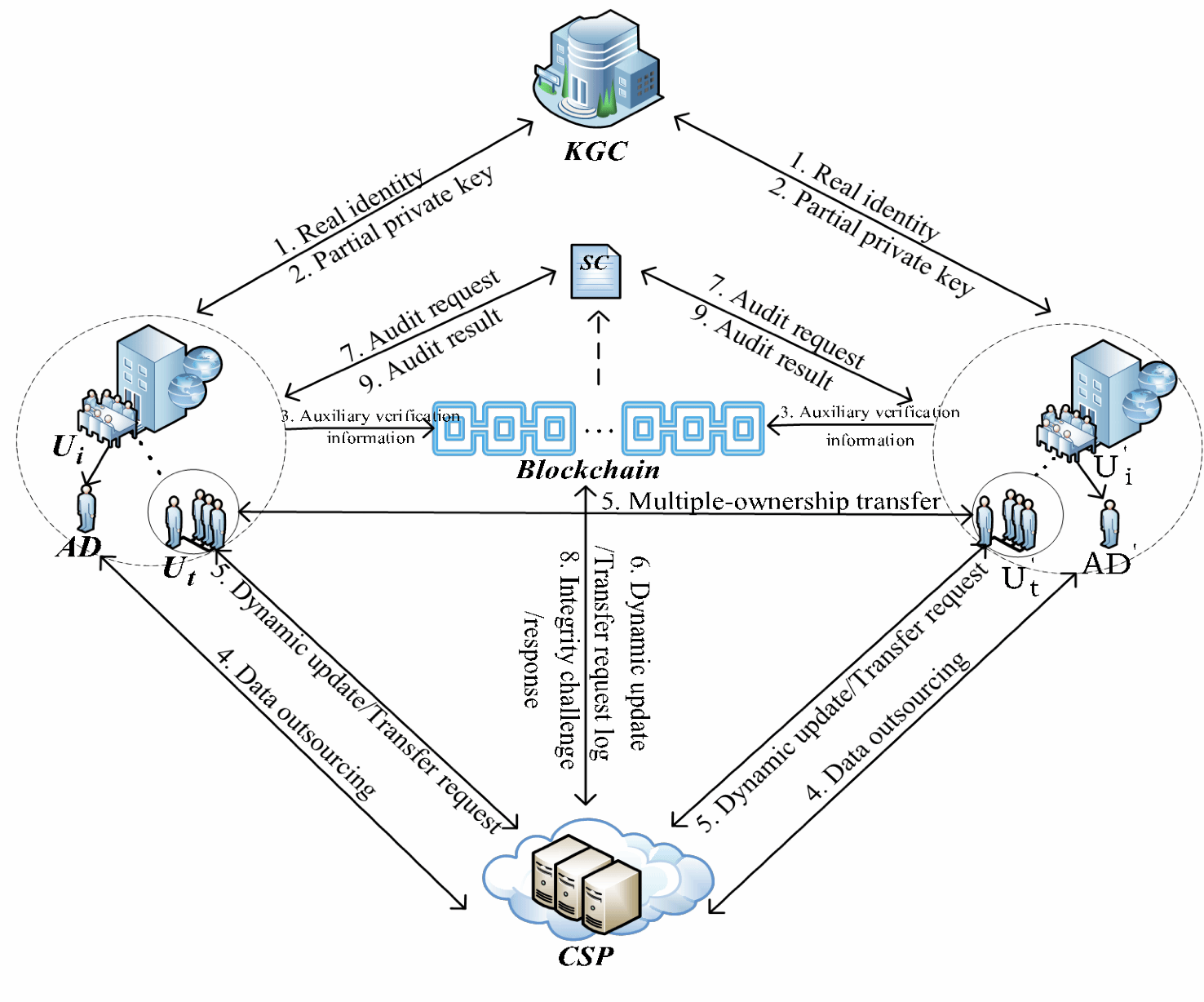 硕士生刘庆(导师:张晓均)在中科院2区期刊IEEE Transactions on Network and Service Management发表学术论文“Dynamic Certificateless Outsourced Data Auditing Mechanism Supporting Multi-Ownership Transfer via Blockchain Systems”。论文链接:https://ieeexplore.ieee.org/abstract/document/10820838。本论文聚焦于云数据迁移领域中的特定场景,涵盖电子病历迁移以及企业并购过程中的数据转移等情形,提出一种支持多所有权转移的高效无证书外包数据审计机制(CDA-MOT)。该机制基于拉格朗日逆多项式定理构造同态认证器,实现了对同一数据文件上多重无证书签名的聚合验证,解决了密钥托管和复杂的证书管理问题。CDA-MOT利用群组特权用户完成了对多所有权共享云数据的权责转移和动态更新,并借助区块链系统存储必要的数据权责转换与更新记录,使该过程更具公开透明和可追溯性;同时利用智能合约实现了去中心化的公共审计。此外,CDA-MOT具有出色的扩展性和适应性,即使在外包数据已完成所有权转移的情况下,它仍能够灵活扩展支持动态更新和去中心化审计操作。