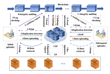 硕士生刘炳云(导师:张晓均)在中科院计算机类1区TOP期刊IEEE Internet of Things Journal发表学术论文“Blockchain-Assisted Fine-Grained Deduplication and Integrity Auditing for Outsourced Large-Scale Data in Cloud Storage”, 该期刊是物联网领域国际顶级期刊,2025年最新影响因子8.9,论文链接:https://xplorestaging.ieee.org/document/10915202。该论文面向云存储系统中数据冗余问题,设计了基于区块链辅助的大规模数据细粒度数据去重与完整性审计机制。基于此机制,实现了跨用户数据块与同态认证标签双层去重。当用户上传外包数据到云存储时,将会进行细粒度的数据重复检测并保障数据去重隐私不会泄露,当检测到重复数据块时,根据构建的稀疏求和向量树使用向量承诺实现分布式重复数据块的所有权认证,有效防止敌手欺骗攻击。用户对未重复数据块生成加密数据的同态认证标签,并将其外包上传给云服务器。为保证外包数据的可用性,通过设计密文重构矩阵并结合可计数布隆过滤器实现了备份数据块的查找、定位与恢复。通过将区块链集成到此机制中,可以帮助用户验证恶意完整性检测行为。