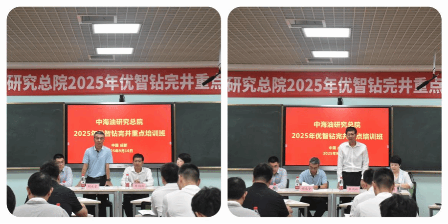 为赋能能源数智转型培育海洋能源新质生产力,2025年9月15日至19日,由学院承办的中海油研究总院2025年“优智钻完井”重点培训班圆满落幕。本次培训深度贯彻习近平总书记关于推动人工智能与实体经济深度融合、培育壮大智能产业的重要指示精神,聚焦“人工智能+能源”高质量发展核心目标,依托“数智化”与“低渗压裂”两大关键场景,为中海油研究总院工作者搭建了“理论+实操+实践”三维学习平台,助力其以高水平科技自立自强赋能海洋能源新质生产力发展。