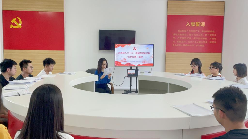 此次红色经典诵读以“青春献礼二十大,强国有我新征程”的为主题,共展示了7个作品,诵读者声情并茂地诵读了红色名篇名段,与会党员们再次共同体会了中国共产党那段浴血奋战的革命岁月、艰苦奋斗的建设时期和团结中国人民走向胜利的光辉历程。在回顾我们党走过的光辉历程中,感受着领袖为国为民的家国情怀和为人民服务的坚定信念;感受着革命先辈矢志不渝的奋斗精神和舍生取义的赤胆忠心;感受着一代又一代中华儿女不断披荆斩棘、奋勇向前的豪情壮志。