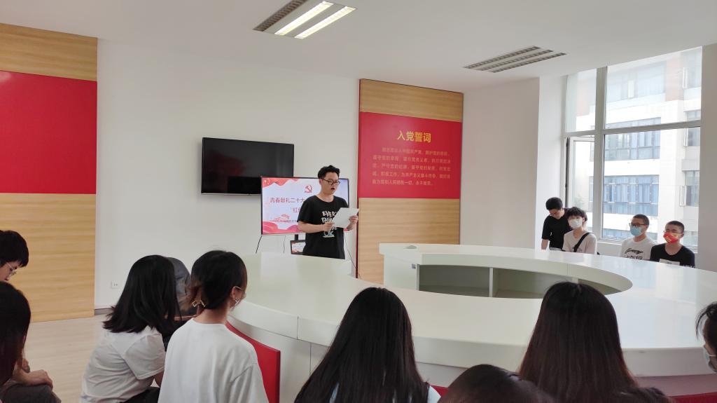 学生第八党支部的陈洁羽为大家分享了梁志超的《少年中国说》,“故今日之责任,不在他人,而全在我少年……美哉我少年中国,与天不老!壮哉我中国少年与国无疆”,同学们在红色经典中汲取营养,体会先辈的精神。研究生第二党支部的黄玉楠分享了《我心中的巾帼英雄》,展现了众多为追寻崇高理想、坚韧不拔、视死如归的英雄人物。从《党旗颂》、《沁园春•雪》到《新中国的一首歌》,同学们的诵读的选材跨越了中国革命、建设、改革的不同时期,大家包含深情的演绎,诵读红色经典,同学们感受着革命豪情,更感悟着内心初心与肩上使命。矢志知党史、感党恩、跟党走,扎扎实实开展党史学习教育,做到学有所思、学有所悟、学有所得,赓续红色基因,肩负时代重任,为中华民族伟大复兴不懈奋斗。