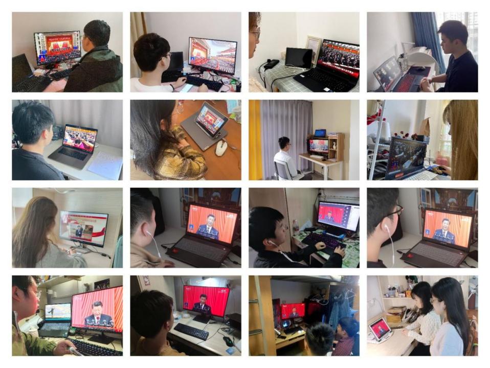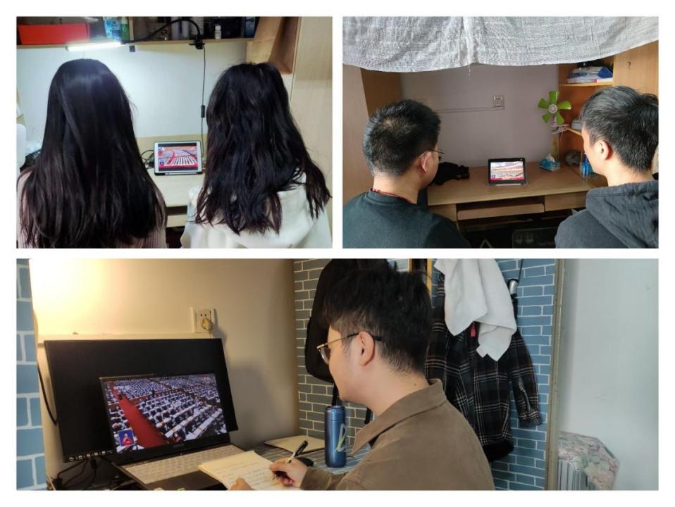 学院教师、学生,在寝室或居家观看二十大开幕盛况
