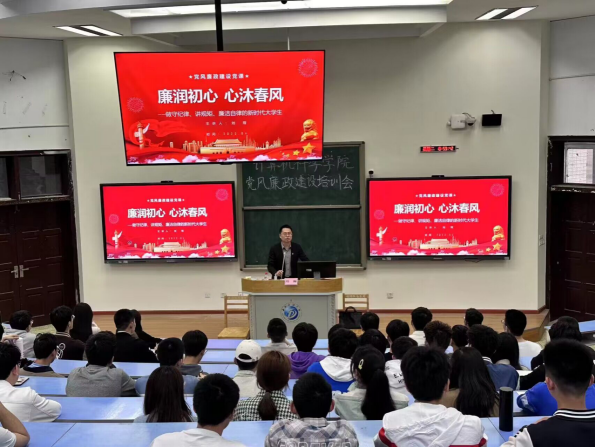 2023年4月4日晚19:00,学院在思学楼B110举办“廉润初心 ,心沐春风 ——做守纪律、讲规矩、廉洁自律的新时代大学生”党风廉政建设专题培训会。