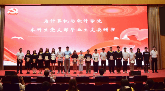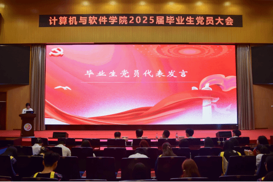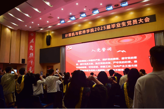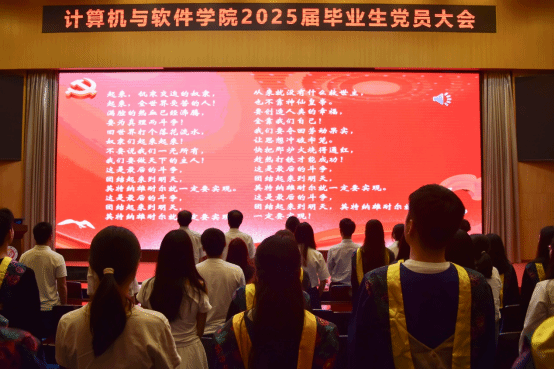 大会第八项,全体起立,奏唱《国际歌》,计算机与软件学院2025届毕业生党员大会在激昂的旋律中圆满落幕。