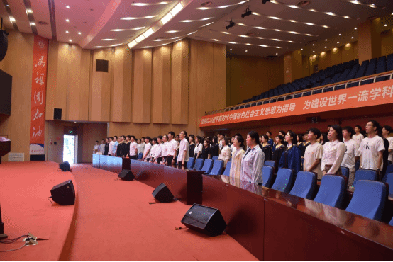 大会第一项,全体起立奏唱中华人民共和国国歌,激昂的旋律激发了在场每一个人的爱国热情和对党的忠心。