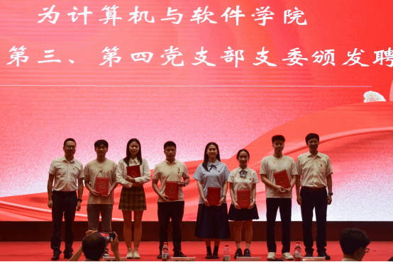 大会第五项,由李涧松书记和刘翔书记将象征着责任与使命的聘书郑重地交到了研究生第三党支部和第四党支部支委成员的手中。聘书在手,使命在肩,他们深知自己肩负着引领和凝聚研究生党员同学的重要职责,将在未来的支部工作中发挥关键作用,为党组织的建设和发展贡献力量。
