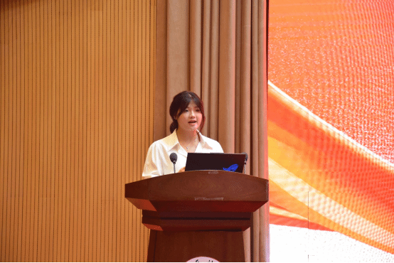 大会第四项,毕业生党员陈惠琳同学作为代表发言,分享了她在大学期间的党员成长历程与感悟。陈惠琳同学从大一开始便积极投身学生组织,参与新闻宣传、志愿服务等活动,通过实践锻炼自己。她表示,“组织入党一生一次,思想入党一生一世”,共产党员不仅要从思想上入党,更要通过实际行动践行党的宗旨,服务同学和人民。作为毕业生党员代表,她呼吁大家铭记入党誓词,无论未来是继续深造还是投身职场,都要以共产党员的标准要求自己,牢记习近平总书记对青年的嘱托,做理想天地的追光者、扎根技能的中国人、红色基因的传承者,让青春在奉献中焕发光彩。陈惠琳同学的成长经历与感悟也激励着每一位党员同学,以青春之名,续写党员担当,为党和人民的事业贡献自己的力量。