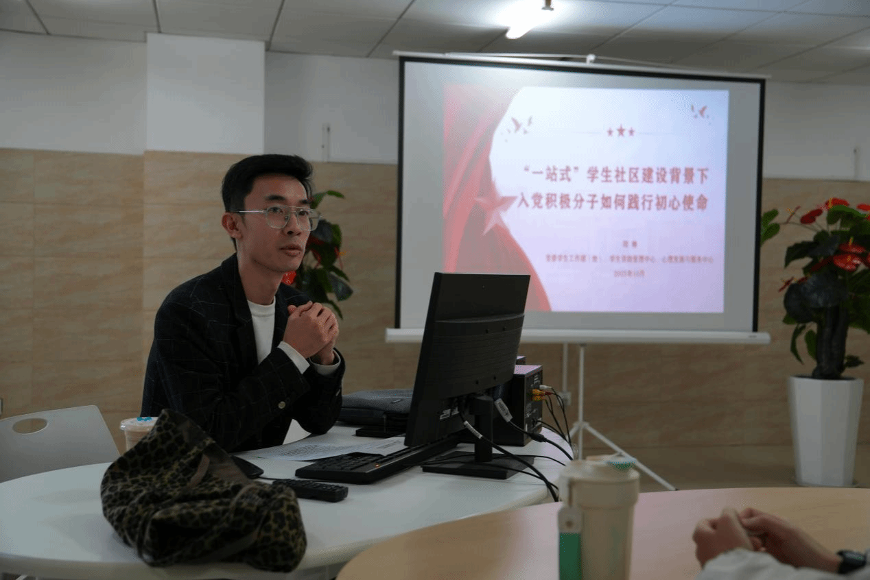 为增强入党积极分子在学习生活实践中的参与感和使命感,10月13日下午,围绕“‘一站式’学生社区建设背景下入党积极分子如何践行初心使命”这一关键主题,郑帅老师以简洁明了又不失生动风趣的语言,与学员们交流分享了学生社区的建设初心、重要使命及学生参与社区建设的重要性与必要性。