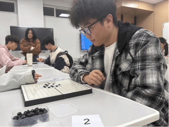 赛事历经七轮激烈角逐,选手们在棋盘上沉着应战、巧妙布局。每一局对弈都悬念迭起、引人入胜。比赛现场秩序井然,选手们凝神屏息,或迅疾落子抢占先机,或静默沉思谋划全局,围绕“连成五子”的目标步步为营。场边观战同学自觉保持安静,专注棋局变化,整个赛场既弥漫着竞技的紧张气氛,也洋溢着友好交流的和谐氛围。