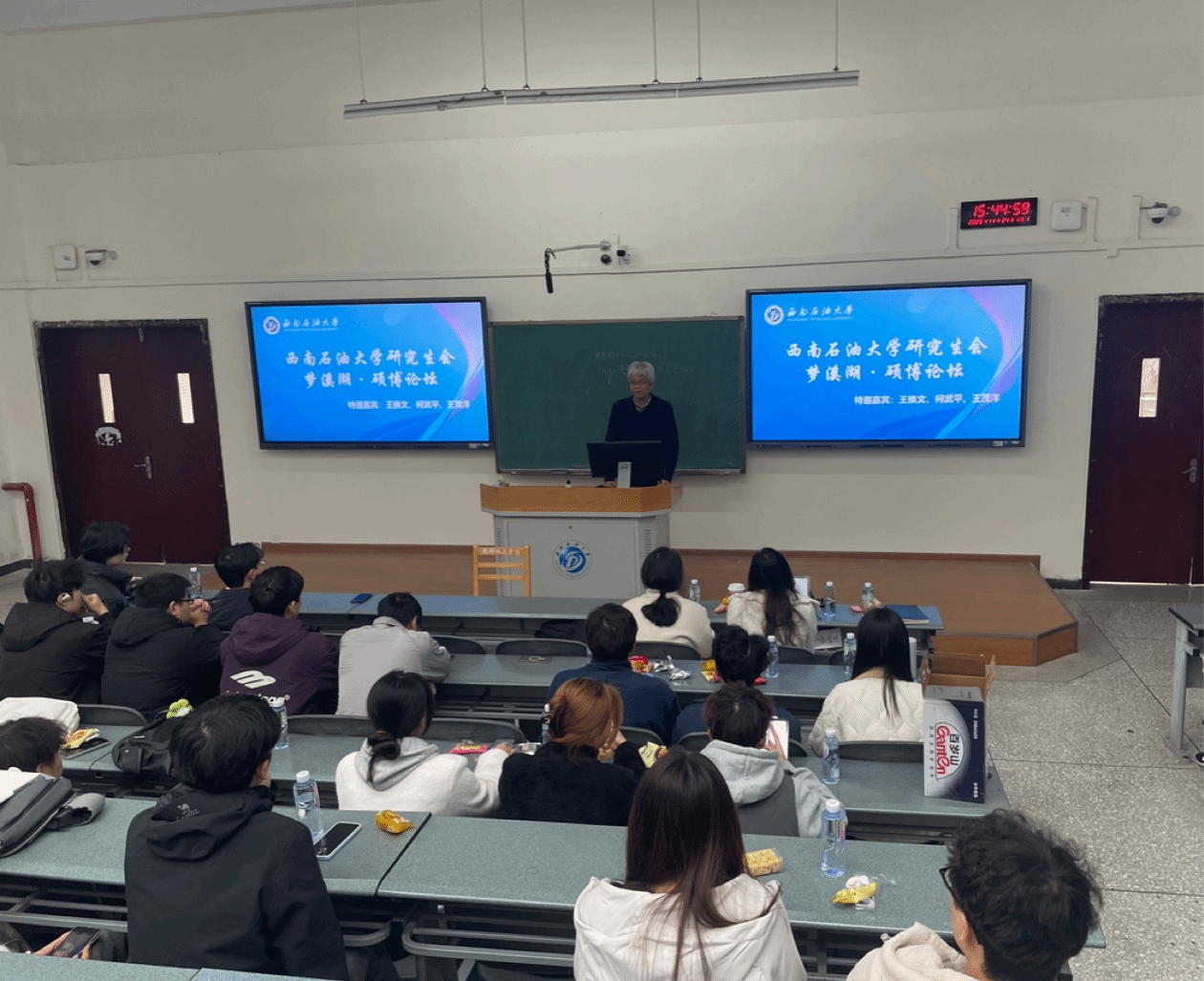 西南石油大学研究生会主办、计算机与软件学院研究生分会承办的“梦溪湖·硕博论坛”于2025年11月24日下午在明辨楼C205顺利举行。本次论坛以“科研方法与学术成长”为主题,特别邀请三位优秀博士生及青年教师代表作专题分享,他们分别是西南石油大学王换文老师、电子科技大学博士生柯武平以及四川大学博士生王茂洋,为我校硕博研究生带来了一场视野开阔、干货满满的学术交流盛会。