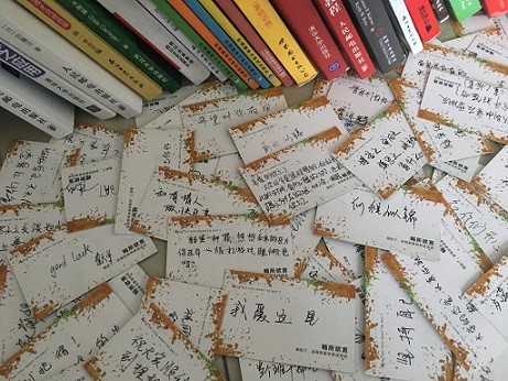 毕业前,学院成立了“毕业银行”,毕业生将还可利用的旧物旧书中捐赠给下一级的学弟、学妹,同时还写下祝福的话留下珍贵回忆,这些书籍与卡片将作为开学礼物送给2019级满怀憧憬的学弟学妹们。除此之外“毕业银行”还存入毕业生好的学习经验和方法,为下一级同学提供良好的学习交流平台。