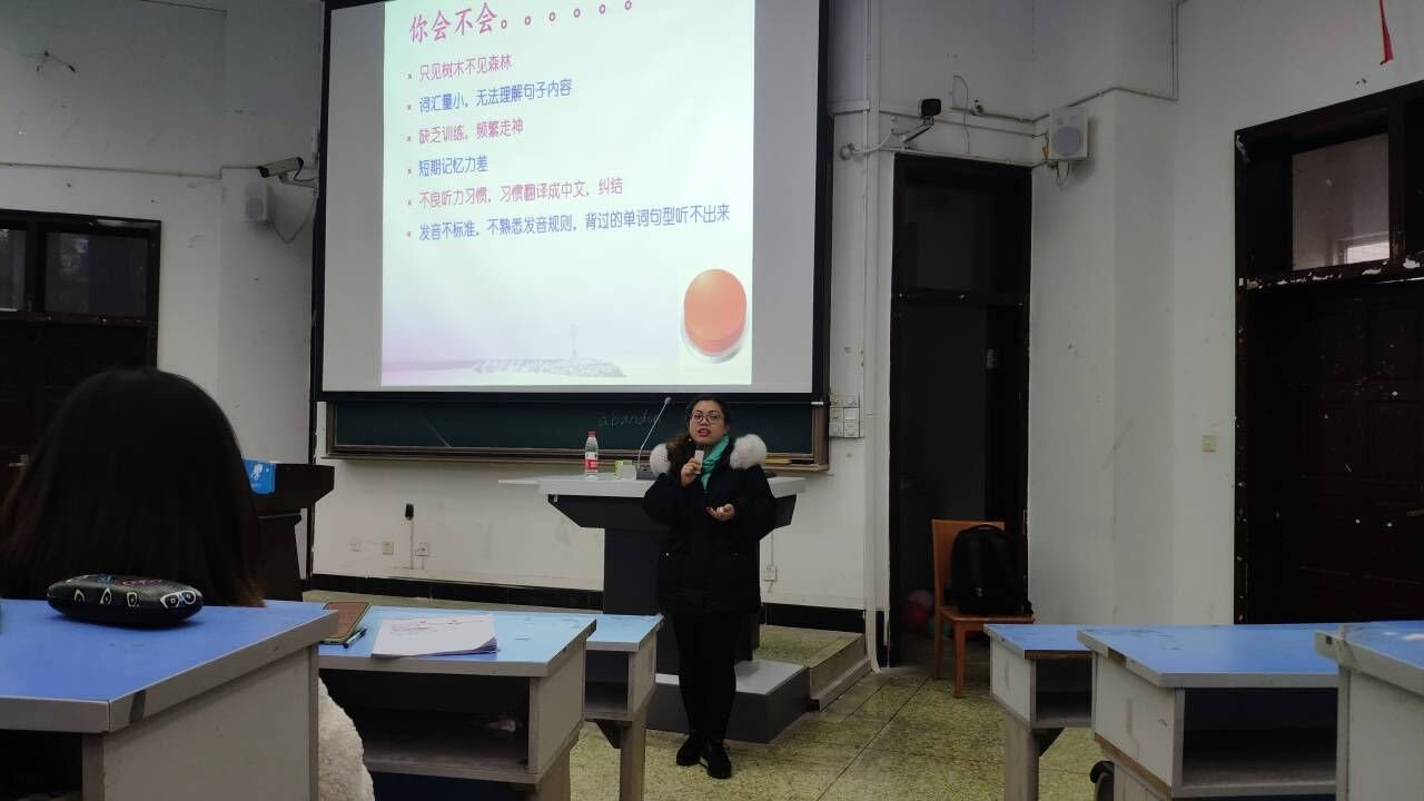接着肖老师着重从“正确调整心态”和“合理安排时间”两个方面做了讲解。她结合了自己在英语学习方面的经历,提醒同学们考试期间,面对题目要从容镇定,不在一道题上耗费过多时间。由于英语四级的听力是重头戏而且是大多学生头疼的问题,肖老师专门用了一个多小时的时间详细讲解英语听力题如何应对,给出了满满的干货,很大程度上帮助了同学们突破英语听力难关。