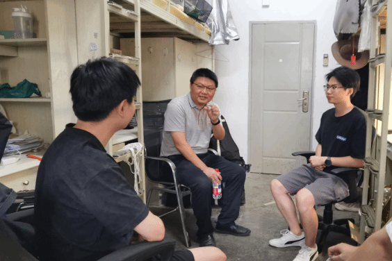 6月21日,副院长彭博在12栋宿舍里与同学们围坐在一起,认真倾听大家的心声。宿舍设施维护、食堂菜品改善、校园交通优化……面对同学们提出的生活建议,彭副院长一一认真记下,对于部分问题当场安排相关部门对接解决,还向大家保证会定期反馈整改进展。他表示,“舒适的校园生活是安心学习的保障,大家的合理诉求我们都会重视,学院就是一个大家庭,需要我们共同建设,也希望大家多提建设性意见,一起让这个家更温暖。”