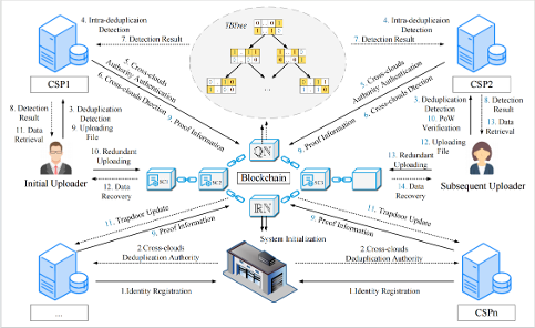 2023级硕士生刘炳云(导师:张晓均)在IEEE Transactions on Dependable and Secure Computing上发表了题为“Enabling Cross-Clouds Encrypted Data Fine-Grained Deduplication and Recovery via Blockchain Systems”的最新研究成果(论文链接:https://ieeexplore.ieee.org/document/11458886)。该研究工作创新性地提出支持区块链协同计算的跨云密态数据细粒度去重与恢复方案。该方案以数据块为去重单位,设计随机分布式消息锁定密钥与联合去重标签生成算法,确保用户去重隐私无泄露风险。为实现可验证去重,构建稀疏向量密文树,生成固定大小的聚合证明信息,完成了分布式备份数据块的有效性验证与可靠性保证,防止恶意去重;为实现高效的跨云去重,降低传统多云去重引发的高通信与高延迟问题,通过构建双层布隆过滤器树与隐私伪随机穿刺函数,有效降低跨云去重检测的通信开销与时间复杂度,实现了跨云去重权限的动态分配与撤销,防止恶意云服务提供商滥用权限。方案额外考虑去重数据的可用性,设计密文重构矩阵并结合布隆过滤器实现分布式去重数据块的查找、定位与取回;方案结合低密度奇偶校验码与智能合约协同计算,突破性地实现了跨云错误密文数据块的精准恢复。该成果在多云环境下的细粒度去重效率和安全性上具有显著优势,为突破现代云存储的性能与隐私瓶颈提供了重要的理论支撑与实践方案。刘炳云同学凭借扎实的科研素养,现已拟录取为国防科技大学网络空间安全博士生。