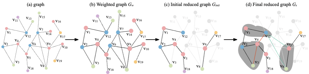 硕士研究生潘海洋在国际会议DASFAA发表学术论文《SPGRF: A Structure-Preserving Graph Reduction Framework》。该论文针对现有图约简方法大多局限于低阶图属性或特定任务,忽略了图的高阶结构,导致约简图无法满足各类下游任务期望的根本局限,提出了一种任务无关的结构保持图约简框架(SPGRF)。核心创新包括:提出了一种从局部到全局的边重要性评估方法,结合基于图卷积网络(GCN)的预测模型来评估边权重,从而指导构建初始图骨架;设计了一种基于邻域的骨架增强机制,通过识别并恢复关键的直接和间接连接来弥补结构损失。在多个真实图数据集上的广泛实验表明,SPGRF在结构保留、执行效率以及多项下游任务性能上均显著优于多种先进基线方法(SSumM、WIS、SsAG等)。尤其在频繁模式挖掘(FPM)任务中表现卓越,即使在约简率低至10%的情况下,Top-k(k=800)频繁模式的准确率依然高达96%。该工作为图数据的通用高效分析提供了一种兼顾多尺度结构保真度与高扩展性的新路径。
