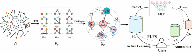 硕士研究生王甜在国际会议DASFAA发表学术论文《Certified Pseudo-label Enhanced Active Learning Framework for Pattern Interest Evaluation》。该论文针对现有频繁模式挖掘(FPM)技术通常依赖于单一维度的客观评估指标(如支持度或模式大小),且未能充分考虑用户主观偏好的根本局限 ,提出了一种用于模式兴趣评估的可靠伪标签增强主动学习框架(CPALF)。核心创新包括:开发了一种融合代表性(基于最近邻关系)与不确定性(基于信息熵)的新型主动学习查询策略,通过有限的人机交互高效获取用户偏好;提出了一种集成半监督学习与增量训练的方法,利用伪标签过滤策略(PLFS)从无标签数据中筛选高置信度的伪标签训练样本;引入了类别感知重放策略(CaRS)的增量学习范式,以缓解持续学习过程中的灾难性遗忘问题 。在Twitter、Twitch、Skitter等六个真实世界图数据集上的广泛实验表明,CPALF在仅使用约3%的标注数据的情况下,即可达到与全监督学习相当的性能,最高预测准确率可达96% 。该工作为资源受限环境下基于用户主观兴趣的图数据模式挖掘提供了一种兼具高预测精度与低标注成本的新范式 。