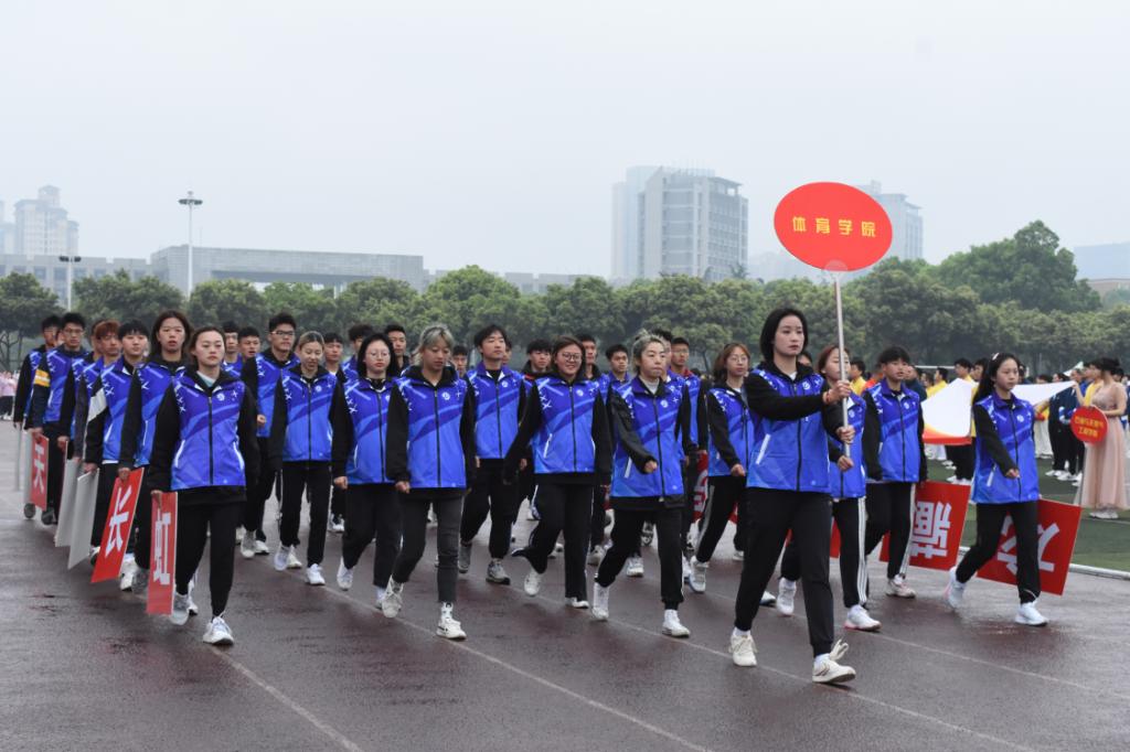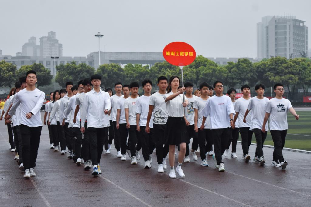 运动员代表方队入场式精彩频现:石工院方队身着红色服装,手举五角星,在主席台前组合成鲜艳的五星红旗;法学院方队拼出“100”字样的图案,庆祝中国共产党成立100周年;艺术学院方队手持电影胶卷图案,以展示学院的专业特色;新材院教工方队右臂贴着国旗,精神饱满地走过看台。各个方队都展示出了自己的精神风貌。