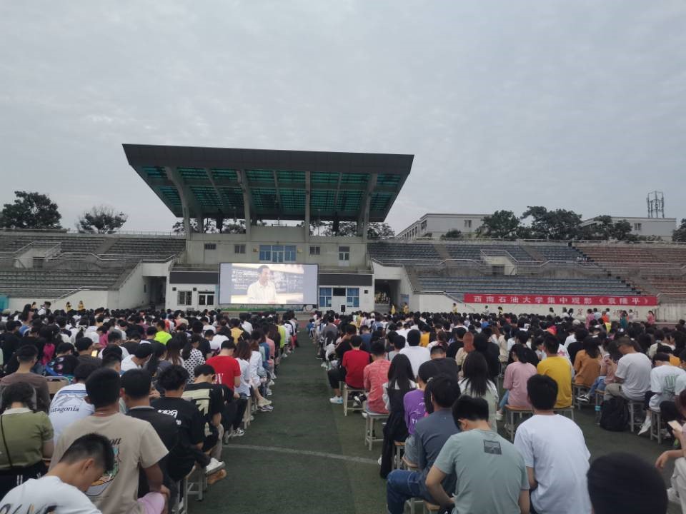 为庆祝中国共产党成立100周年,回顾党的光辉历程,进一步激励广大师生传承红色基因,培育爱党爱国情怀,坚定永远跟党走的信念,西南石油大学于5月29日和30日组织师生在一期足球场集中观影《建党伟业》与《袁隆平》。