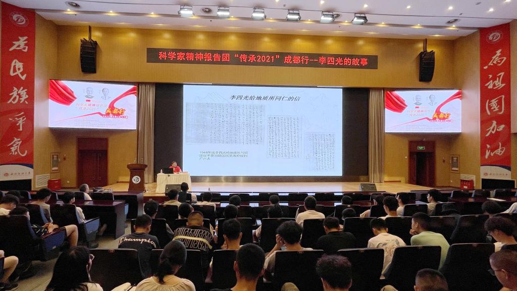 在下午举行的庆祝中国共产党成立100周年科学家精神宣讲报告会上,邹宗平、刘强分别向我校师生作主题为《石迹耿千——李四光的故事》、《登上地球三极的中国科学家——地球环境学家刘东生院士的故事》的科学家精神宣讲。