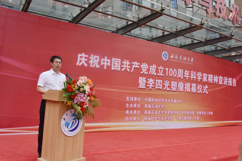 党委常委侯忠建、易联树、党委学生工作部部长蒲勇以及地科院师生代表参加塑像揭幕仪式,地科院党委书记朱江主持揭幕仪式。