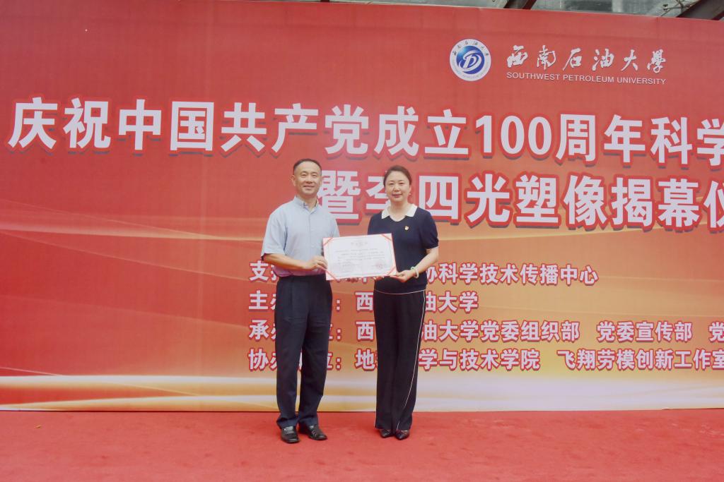 仪式上,邹宗平、刘强分别为西南石油大学捐赠图书,学校图书馆直属党支部书记杨春丽代表学校接受捐赠,并为邹宗平、刘强分别颁发捐赠证书。