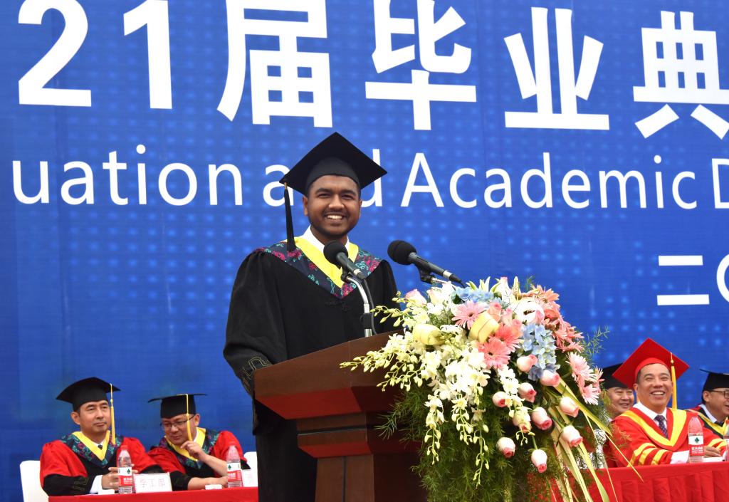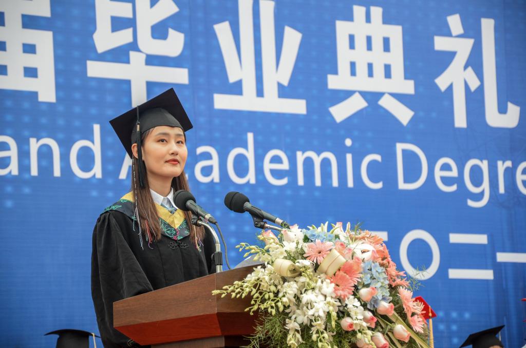 校友代表、教师代表、本科毕业生代表、国际学生代表和研究生毕业生代表依次上台发言。