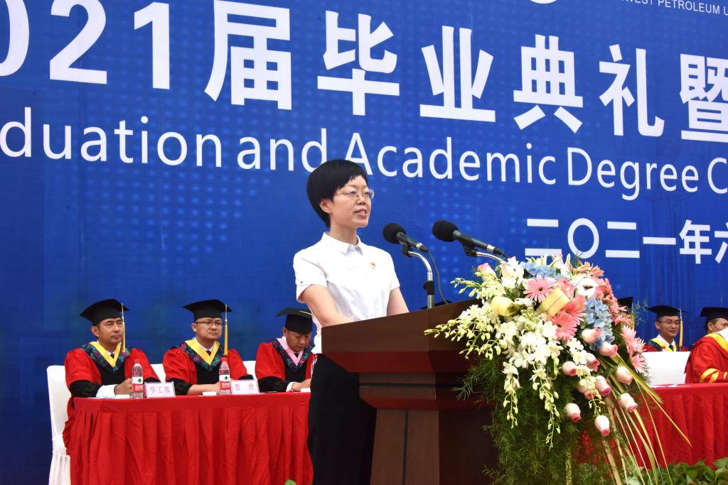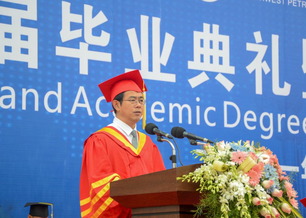 赵正文寄语全体毕业生,他指出,作为亲历“两个一百年”交汇的新时代青年,你们的未来将融汇于中华民族伟大复兴的新征程,你们正处在一个大有可为的时代。希望你们起而行之、勇挑重担,积极投身新时代中国特色社会主义的伟大实践,经风雨、见世面,真刀真枪锤炼能力,以过硬本领展现作为、不辱使命;希望你们始终牢记青年人承载着特殊的历史使命和光荣的时代使命,积极主动作为,直面风险挑战,以坚韧不拔的意志和无私无畏的勇气,战胜前行道路上的一切艰难险阻,在脚踏实地和仰望星空中绽放绚丽的青春之花;希望同学们继续秉承西南石大“实事求是,艰苦奋斗”的优良传统,弘扬“为祖国加油,为民族争气”的大学精神,不忘初心,砥砺前行,在新的人生旅程中再写美丽华章。