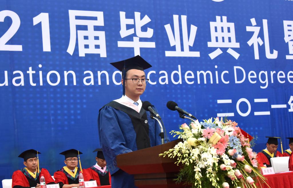 马克思主义学院2021届毕业生,2020全国青年马克思主义者培养工程高校班学员、第30届校研究生会主席郭佳鑫作为研究生代表发言。他以“追梦”为关键词与全体毕业生共勉。他说,我们都是最美的追梦人。无论是远赴大漠戈壁,还是扎根田间地头,或是下沉社区基层,我们都要用行动证明:西南石大青年是好样的,西南石大青年决不辜负祖国和人民期望。