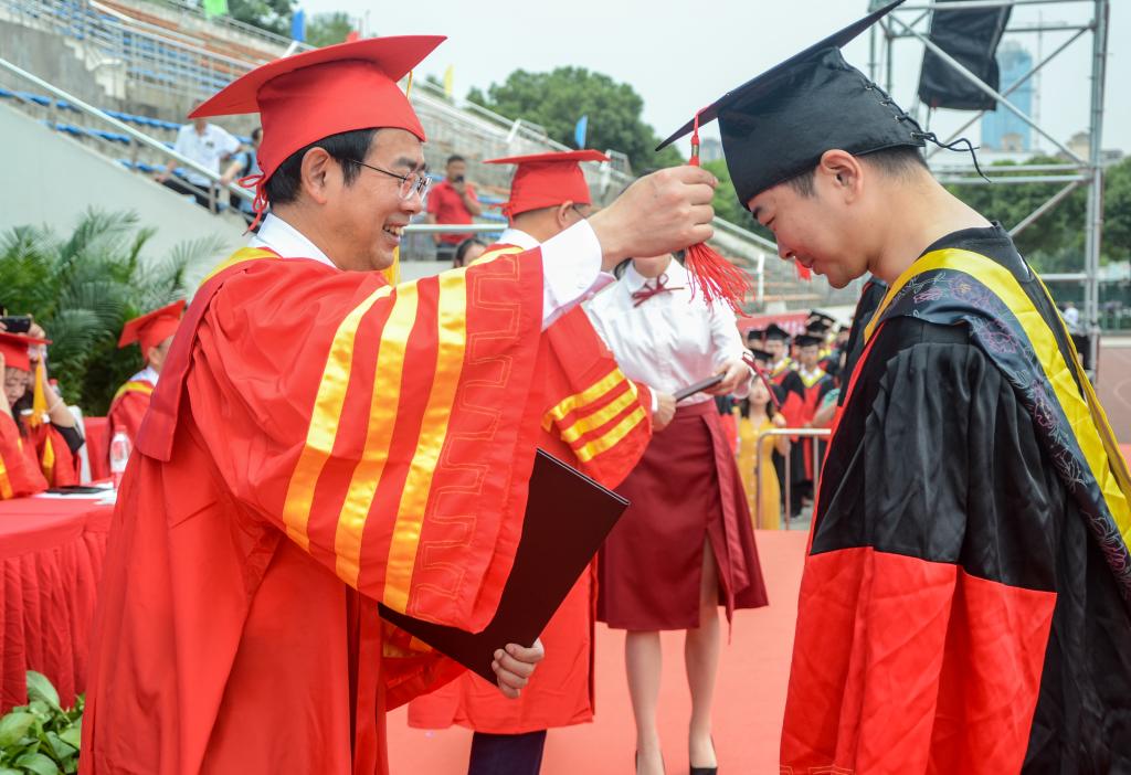 校领导和导师们为本硕博毕业生一一拨穗,颁发学位证,并与每一位毕业生合影。