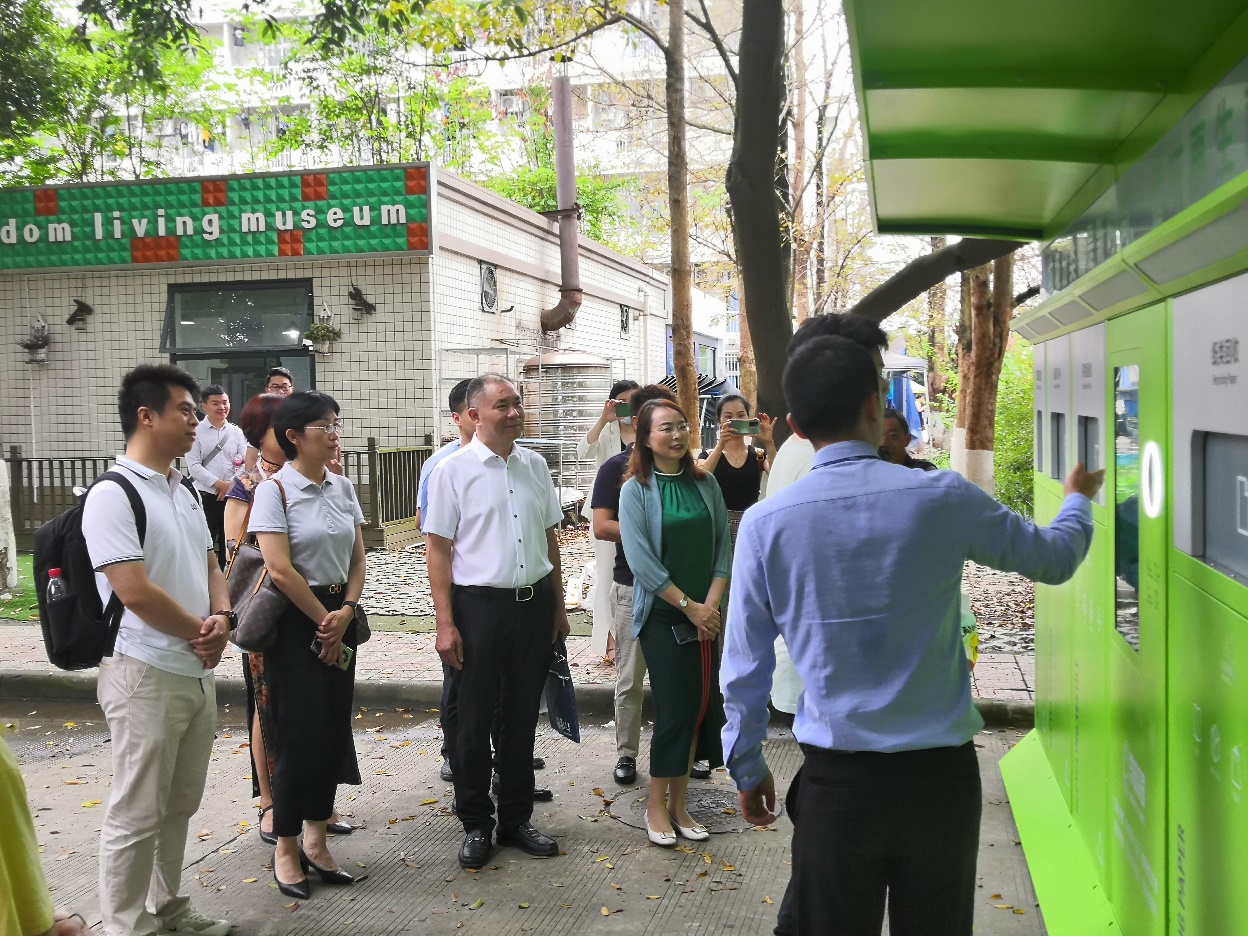 7月2日,民间公益组织德阳市泰田文化善行中心向我校捐赠了一台价值14万元的智能垃圾分类回收设备,安放在学生生活区,供学生投放可回收垃圾。