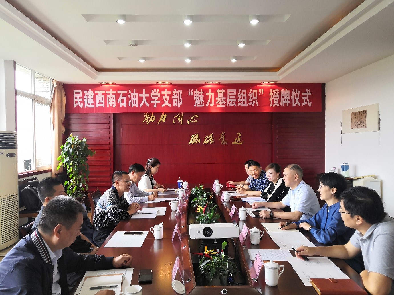 9月16日,中国民主建国会(简称民建)四川省委授予民建西南石油大学支部“魅力基层组织”的授牌仪式,在学校思学楼A401民主党派会议室举行。民建成都市委会秘书长钟琪、学校党委常委、统战部部长张昌元出席仪式。