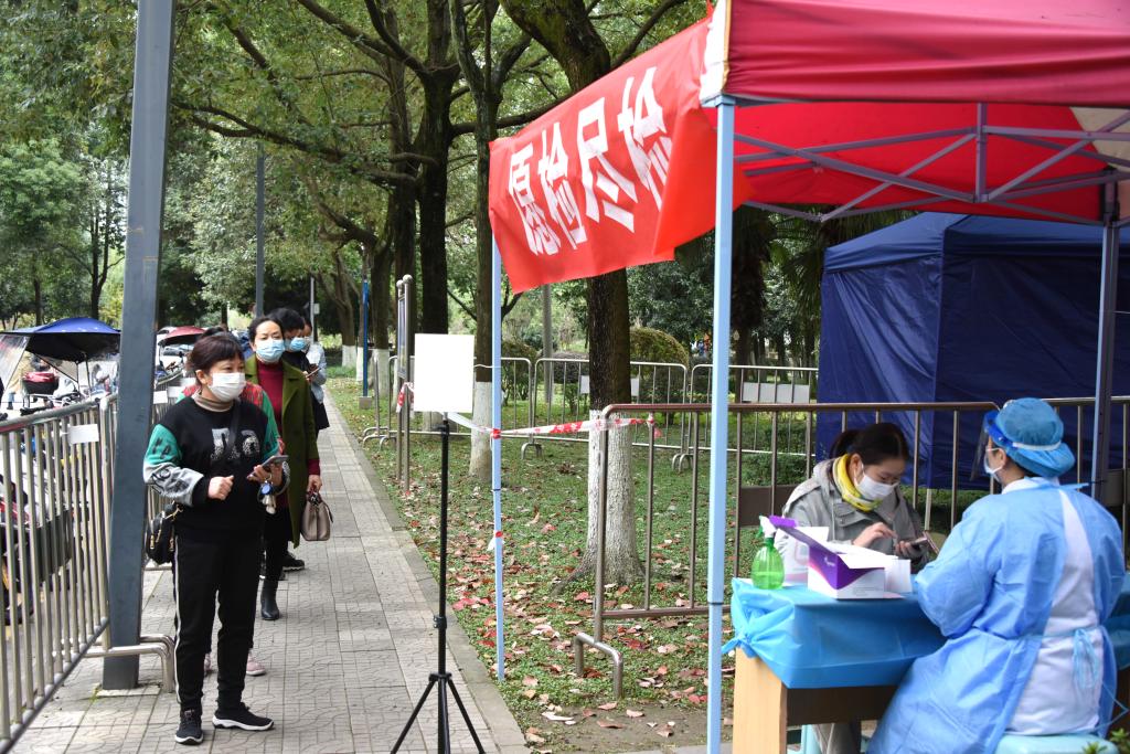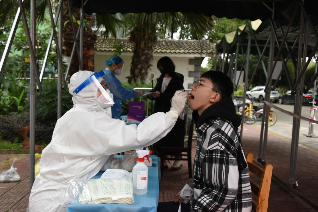 校医院愿检尽检区 师生有序排队等待核酸检测