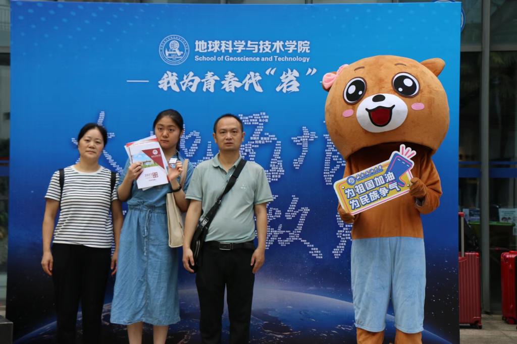 地科院为每位新生准备了一块小小的矿石,体现了学院的学科专业特色。学院门前的“朋友圈”立体板吸引了众多新生及家长合影留念,记录下同西南石油大学的“初次见面”。