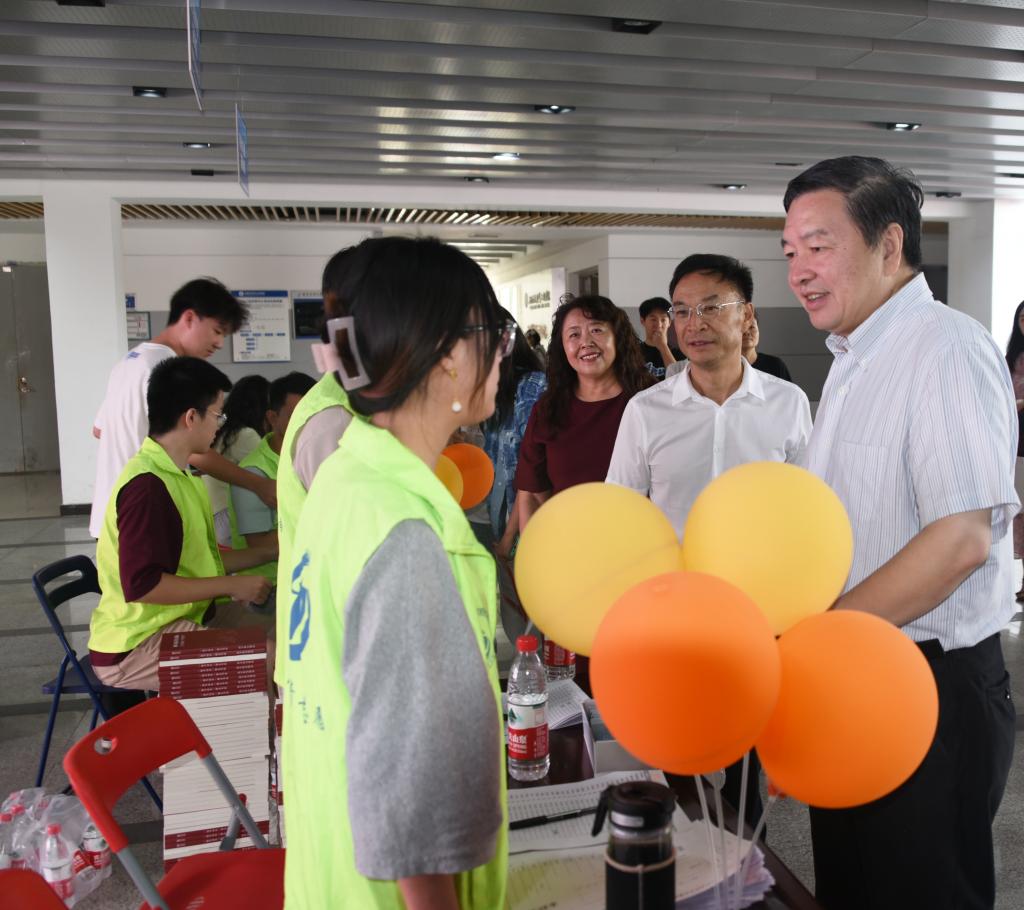 8日上午,校党委书记陈永灿,校党委副书记、校长张烈辉,校党委副书记、校工会主席衡彤一行检查指导了迎新工作,同2023级新同学及家长亲切交流,看望慰问迎新志愿者和工作人员。陈永灿一行先后在东大门、经管院、博学广场、石工院等迎新点和迎新志愿服务站,检查新生入校各个环节,了解新生入学报到人数、报到工作进展等情况,提醒各学院要做好服务,把好新生入口关,给新生提供热情周到的服务,让新生感受到家的温暖。陈永灿一行还与新生亲切交谈,了解他们的入学感受,嘱咐新生尽快适应大学生活,把握大学时光。