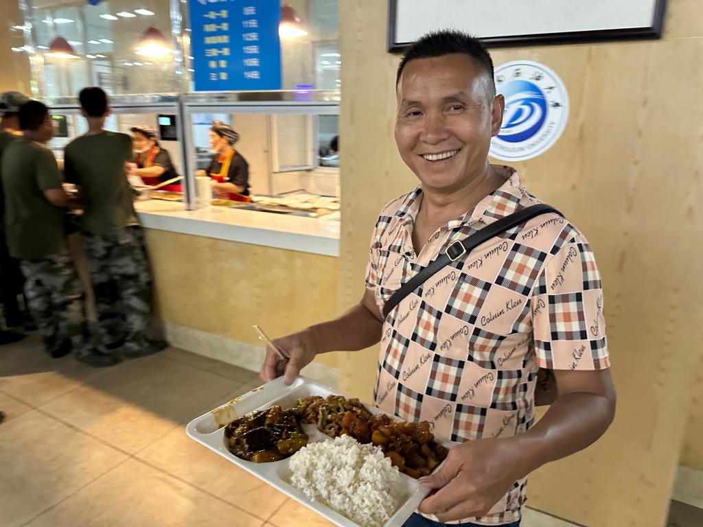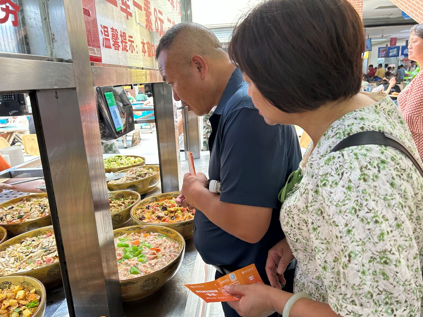 现场领取餐券的新生和家长络绎不绝,新生和家长们凭预约单领取餐券并选择心仪的窗口领餐。报到第一天,机电院新生小明一家七口齐上阵。中午在学生第一食堂享用“体验餐”时,他点赞学校暖心举措:“天气炎热,爷爷奶奶和小宝宝出行不便,能够就近在学校食堂用餐,不仅方便、卫生,也充满了人情味。”