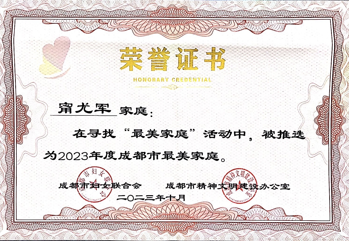 在此前开展的“2023年度新都区‘最美家庭’推荐评选活动”中,我校推荐的李民家庭、甯尤军家庭、张杰家庭获新都区“最美家庭”称号。