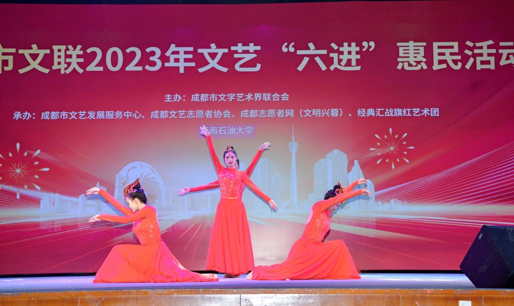 12月11日晚,成都市文联2023年文艺“六进”惠民活动——战旗红艺术团西南石油大学专场惠民演出受邀在我校举行。校党委副书记、纪委书记张明出席活动并致辞,校党委常委、副校长李德海出席活动。