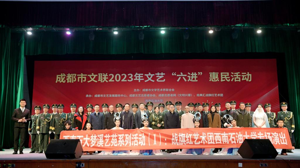 据悉,本次活动也是我校梦溪艺苑系列活动的第一场演出,由成都市文学艺术界联合会和我校主办,成都市文艺发展服务中心、成都文艺志愿者协会、成都志愿者网(文明兴蓉)、经典汇战旗红艺术团承办,我校艺术学院和教育发展基金会为支持单位。学校将进一步加强和校外艺术团体的合作交流,多渠道、多形式上好大学生艺术思政大课。