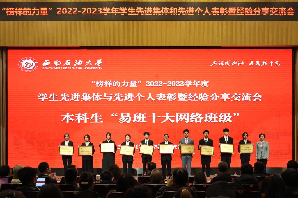 衡彤宣读了表彰文件,决定授予石油工程2022级创新2班等95个先进集体“十佳班级”“易班十大网络班级”“先进班级”“研究生先进班集体”“研究生学术科技文化活动优秀组织奖”荣誉称号,李乐豪等2270名学生“十佳三好学生”“十佳优秀学生干部”“三好学生”“优秀学生干部”“十佳杰出研究生”“十佳优秀研究生干部”“十佳研究生学术标兵” “优秀研究生”“优秀研究生干部”荣誉称号。校领导与相关单位负责人为获奖代表颁奖。