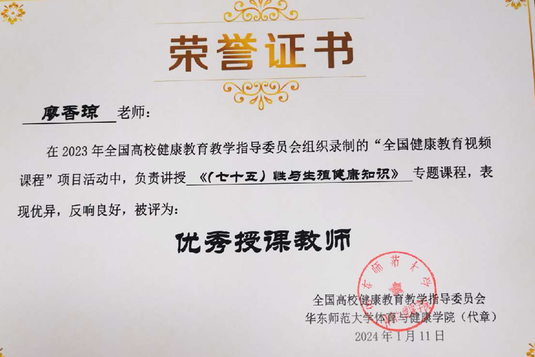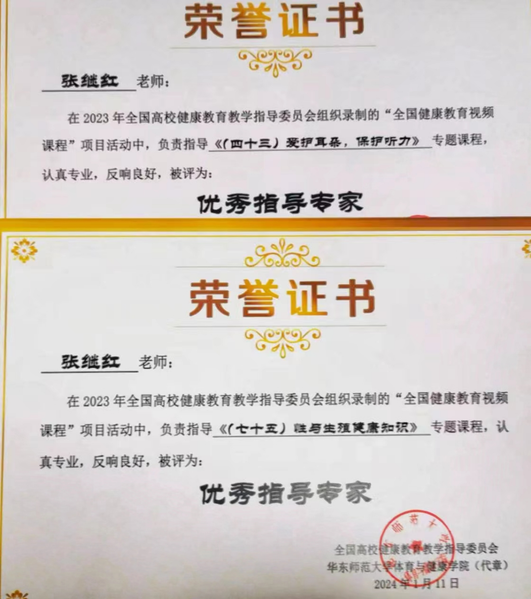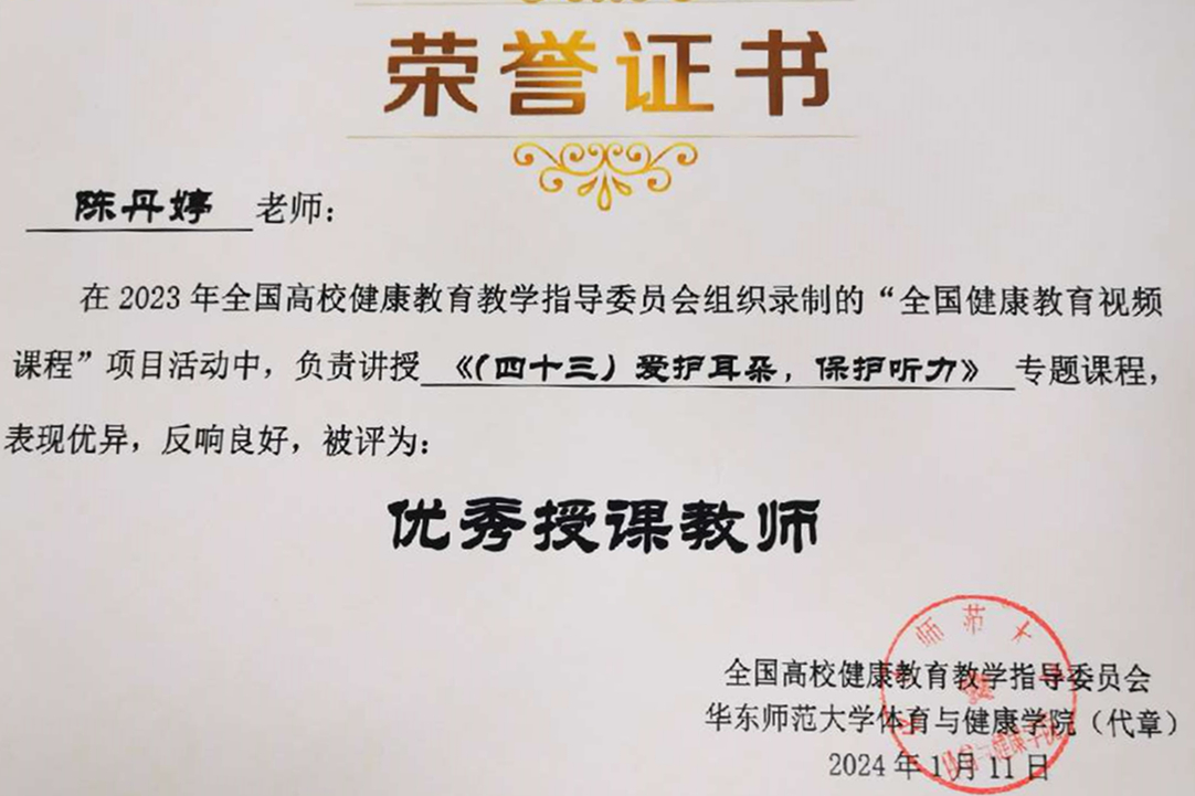 1月10日-12日,全国高校健康教育教学研讨会在沪召开,会议正式发布了全国学校健康教育视频系列课程,其中“性与生殖健康知识”“爱护耳朵、保护听力”两门课程由我校校医院参与录制。全国高校健康教育教学指导委员会项目组为校医院院长张继红颁发了“优秀指导专家”证书,为医生廖香琼、陈丹婷颁发了“优秀授课教师”证书。