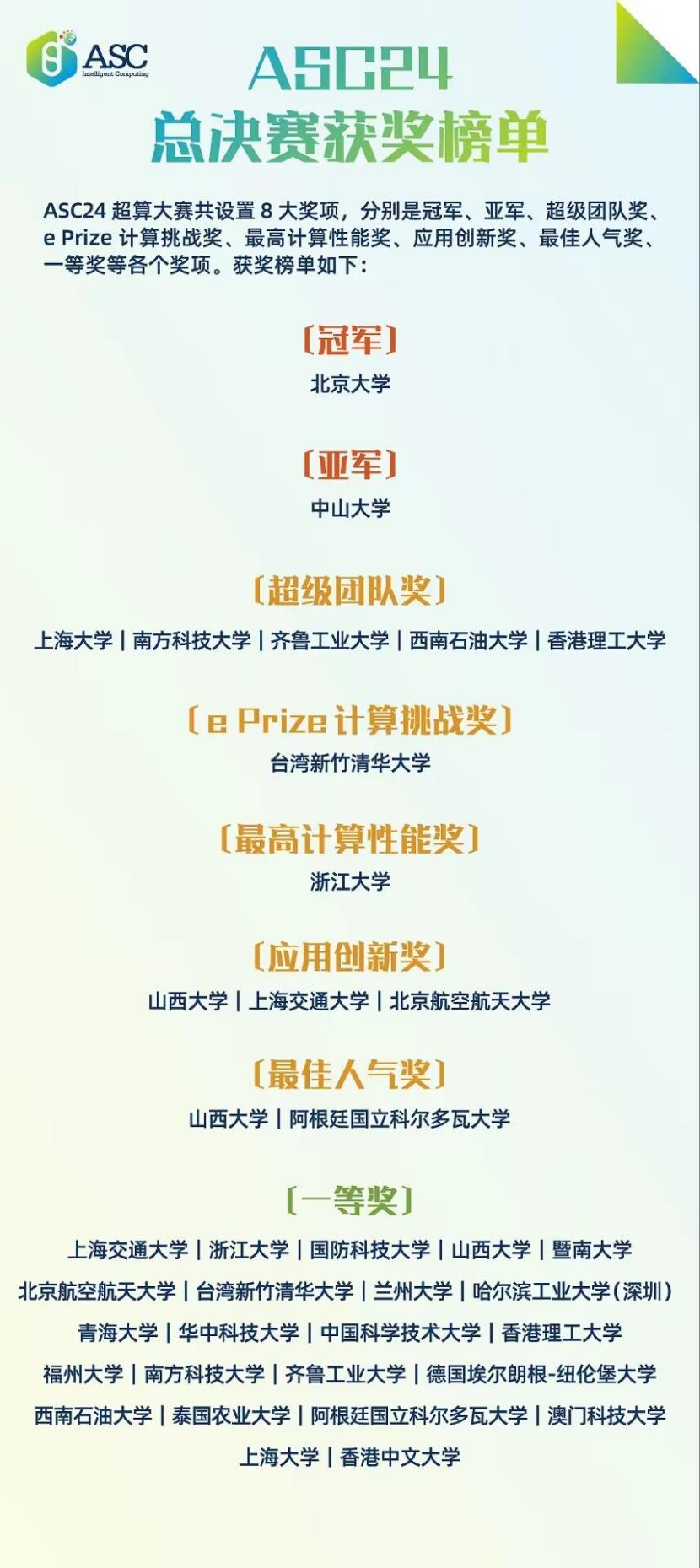 4月14日,历时5天的2024ASC世界大学生超级计算机竞赛决赛落幕,我校代表队获得一等奖、超级团队奖。