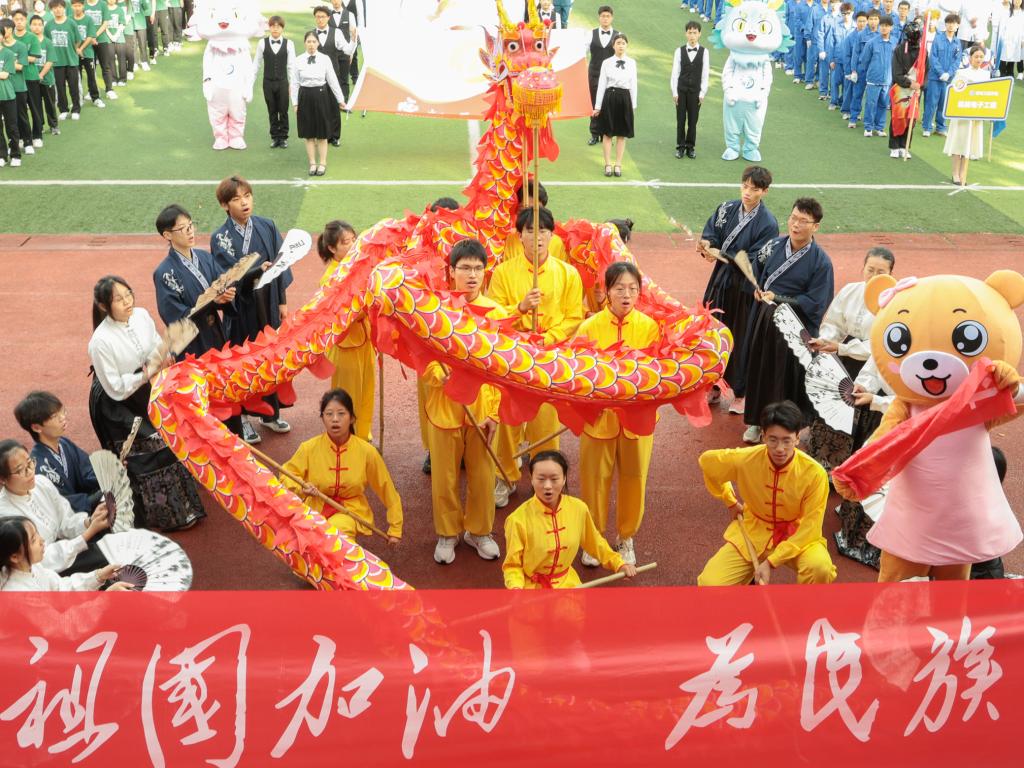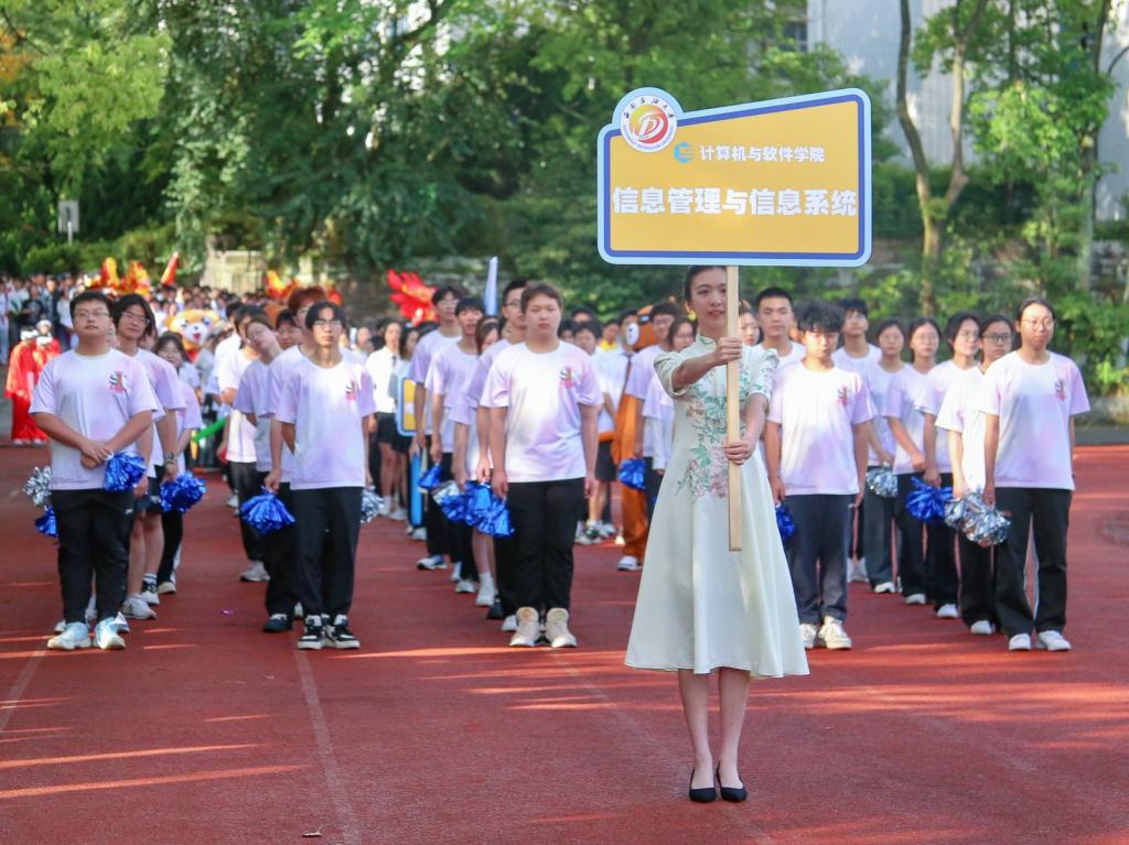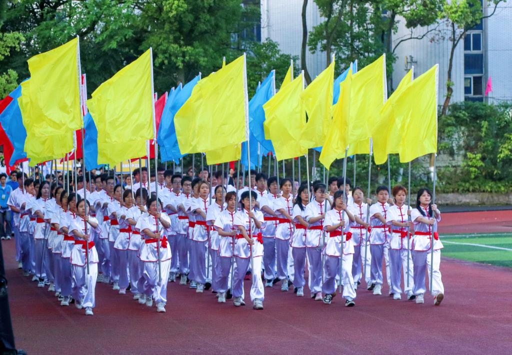 伴随着铿锵的运动员进行曲,国旗护卫队护卫鲜艳的五星红旗率先入场,随之校旗方队、运动会会旗队、吉祥物龙娃、龙妞和彩旗队依次进场,18支专业代表队、西柚老兵方队和教职工代表队步伐矫健地通过主席台。随后,举行了庄严的升国旗仪式。