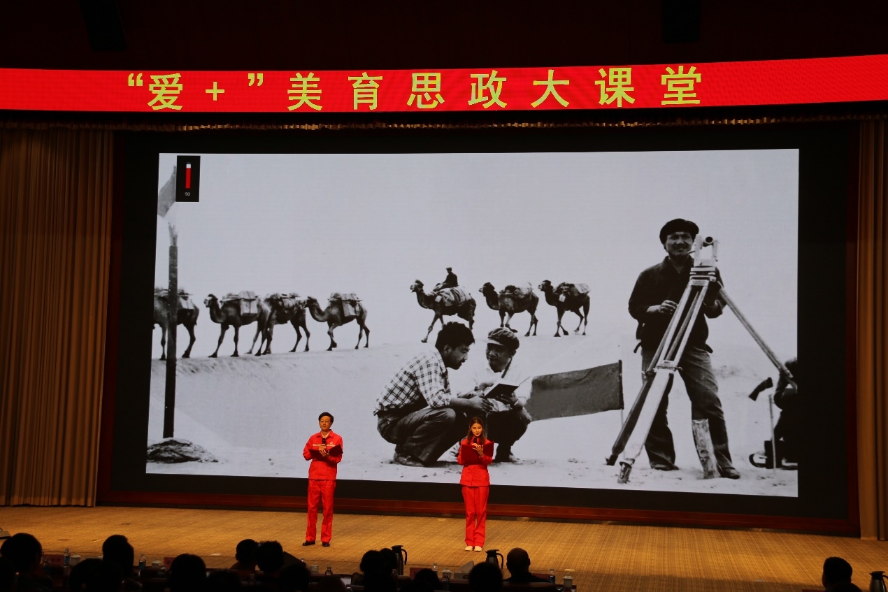 课堂由西北石油局红色教育基地讲解员爱克丹带领课堂主讲人王炜的沉浸式讲述拉开帷幕,“爱+”送文化走进边疆,在李民老师前期带领团队深入调研了解的基础上,师生们如获至宝的创作灵感针对西北石油人的感人故事,文化精髓与传承等专题创作了系列作品。窦浩老师的朗诵作品《亲爱的,热爱的》,赞美石油人的奉献精神,关航老师的脱口秀作品《孤独、坚守、家》,王娜老师结合新疆元素编排并表演维吾尔族舞蹈《赛乃姆》,王璇老师作画《天山雪莲》向西北油田献礼,杨阎芸辉琵琶弹奏《送我一支玫瑰花》《如愿》点题要爱脚下这片热土珍惜现在展望未来。特别一提的是师生主创的小品《爸,我回来了》在课程统筹负责人赵邦宇的带领下短短数日,师生在行程中、披星戴月争分夺秒的创编呈现了石油人父爱、家庭、责任、坚守、传承与对石油饭碗要牢牢端在我们自己手里的情怀决心和实际行动,让在场观众喜泪交加,感动与震撼。