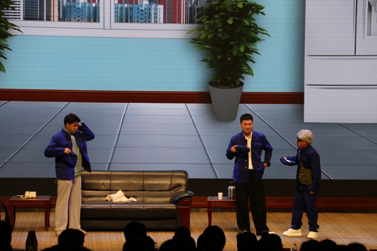 教师关航、赵邦宇,学生谷明、张又丹原创小品《爸,我回来了》