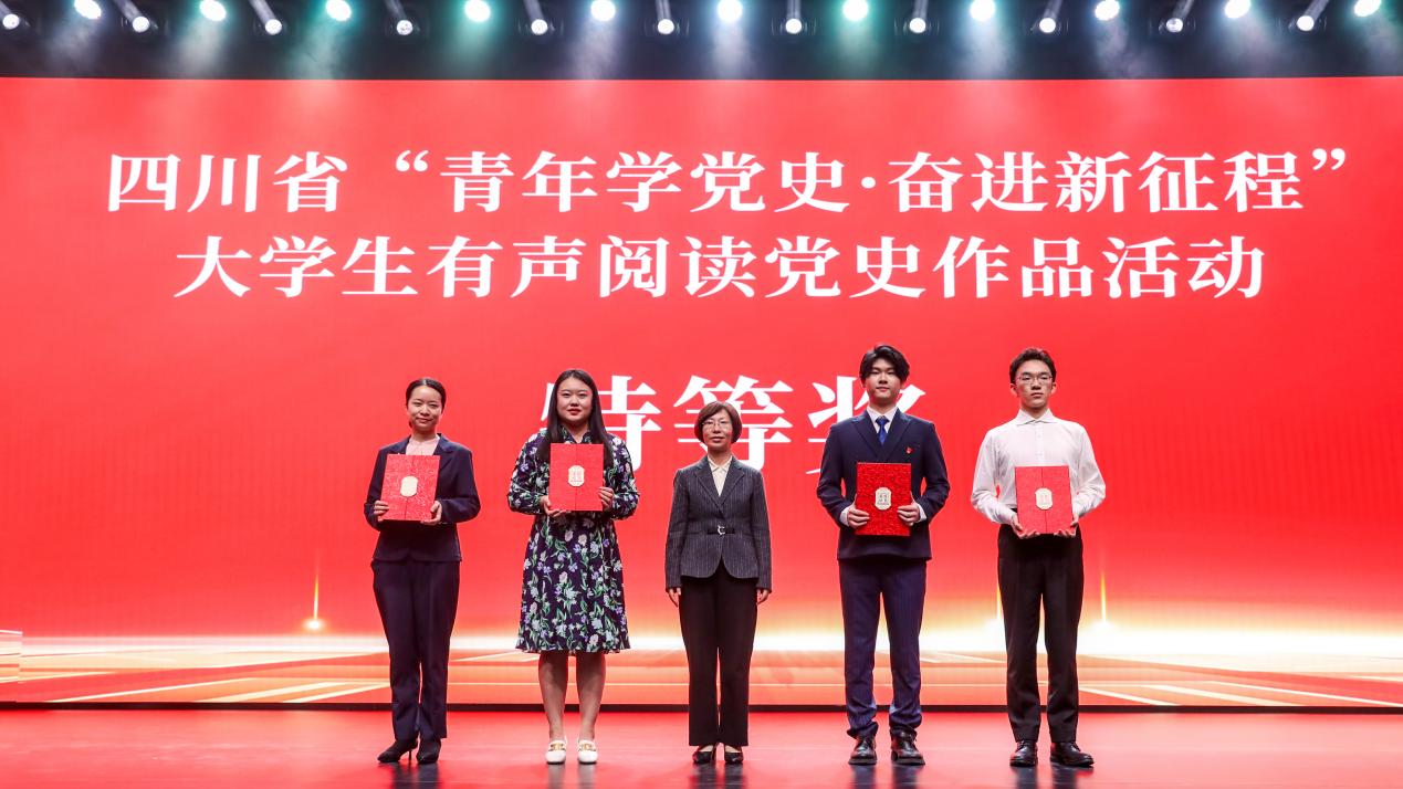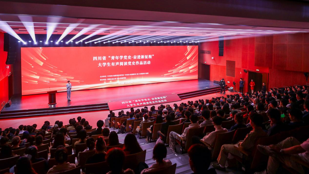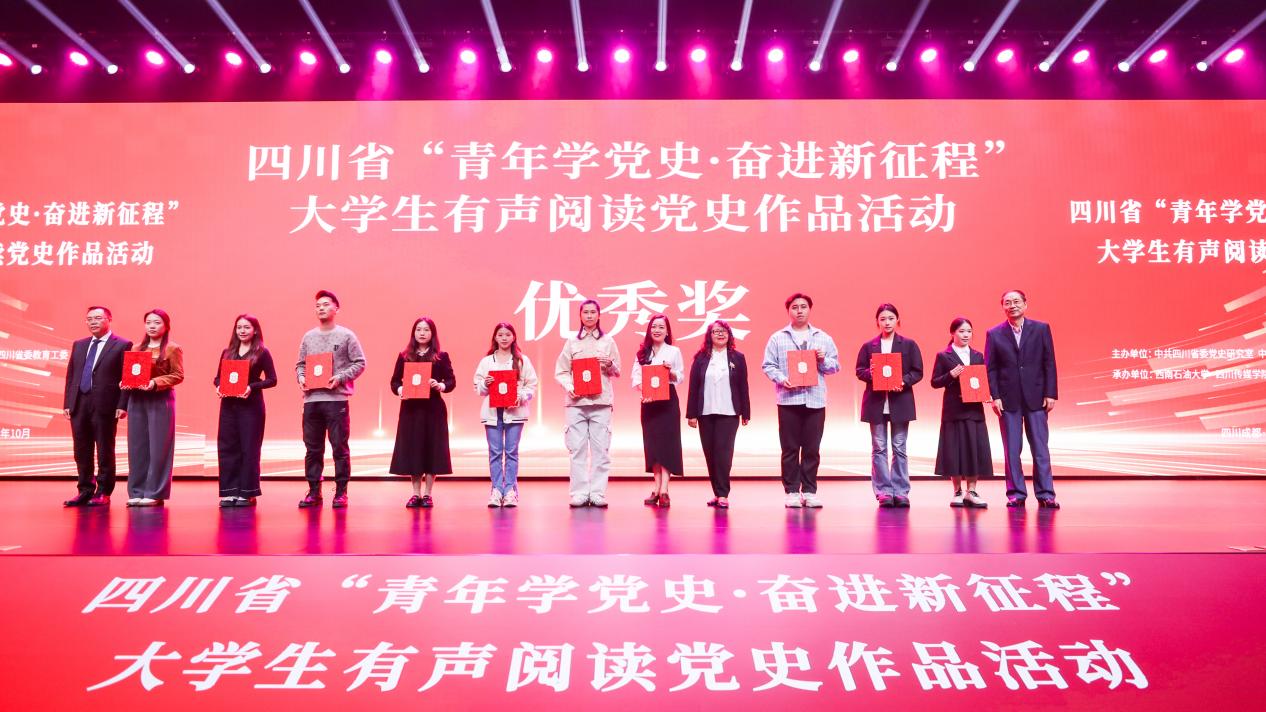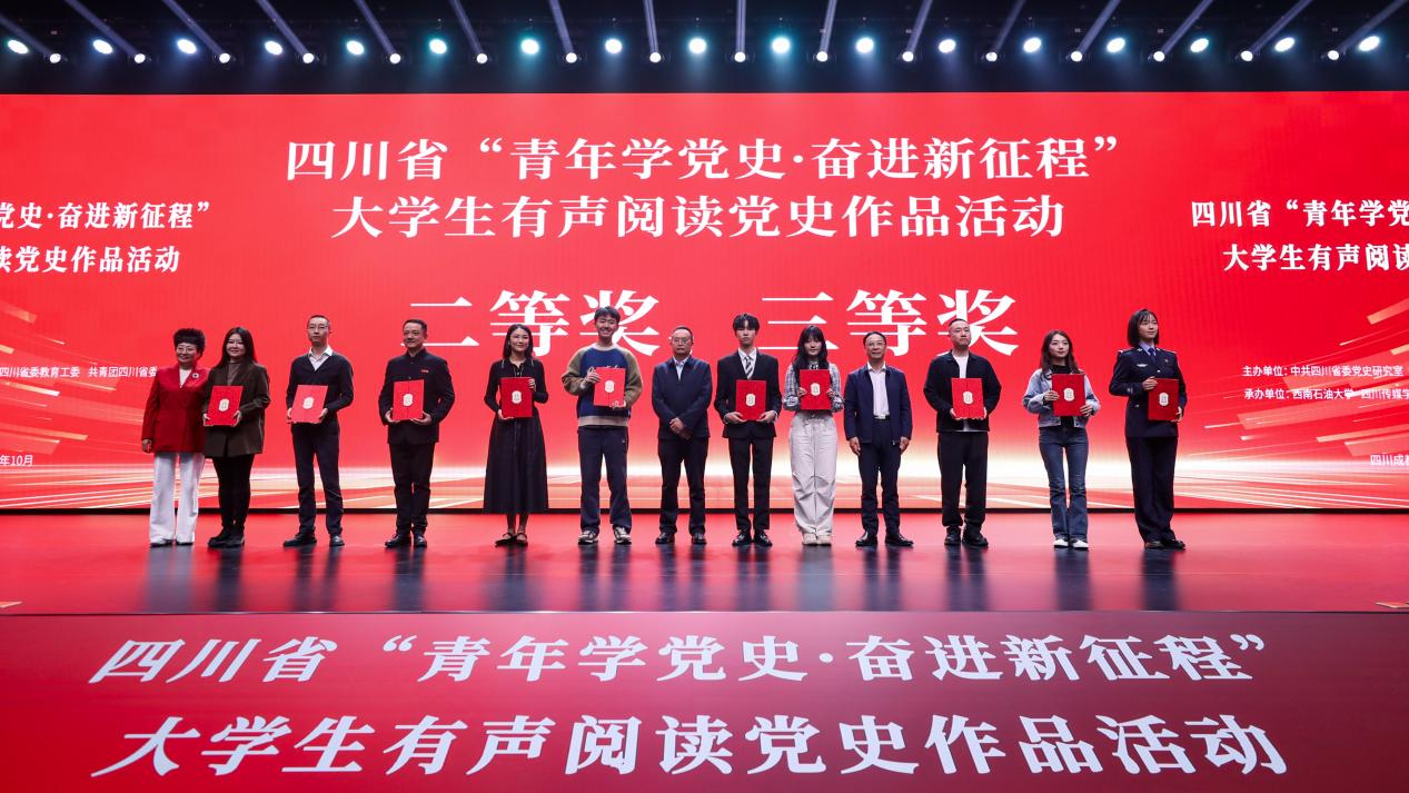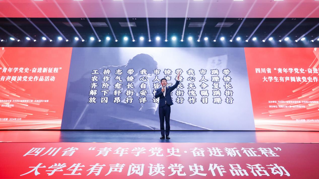 在展演活动现场,我校石油与天然气工程学院穆曈的诵读作品《“我党我军政治工作第一人”刘伯坚》,艺术学院吴梓晴、甄天泽、李铮皓和外国语学院朱小会等同学的表演作品《他的姓名曾是最高机密——中国核潜艇之父彭士禄》代表我校获奖作品进行了精彩展示。此外还有来自四川农业大学、四川音乐学院等高校的10个获奖作品参与了现场展演。同学们深情展示了中国共产党带领四川人民进行革命、建设、改革的生动故事,热情讴歌英雄人物可歌可泣的光辉事迹。川康大地获解放、三线建设、“我党我军政治工作第一人”刘伯坚、中国人民志愿军特级战斗英雄黄继光、中国核潜艇之父彭士禄……一个个鲜活的事例和人物在同学们的讲述下,彷佛让大家穿越时空,回到了那段波澜壮阔的光辉岁月,身临其境感受党治蜀兴川砥砺前行的伟大历程。