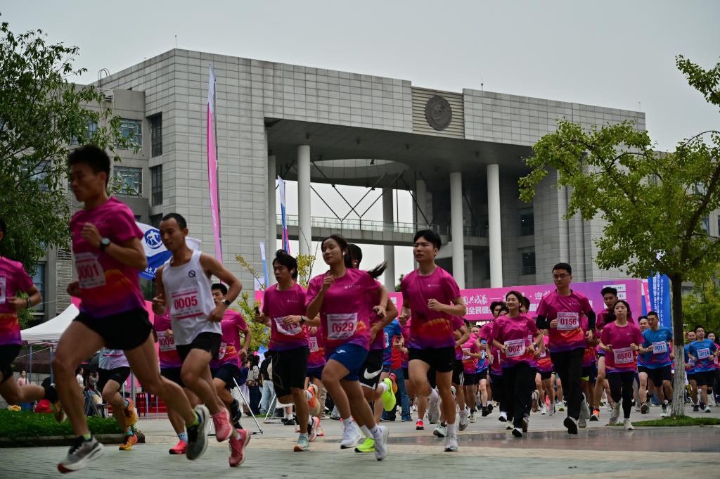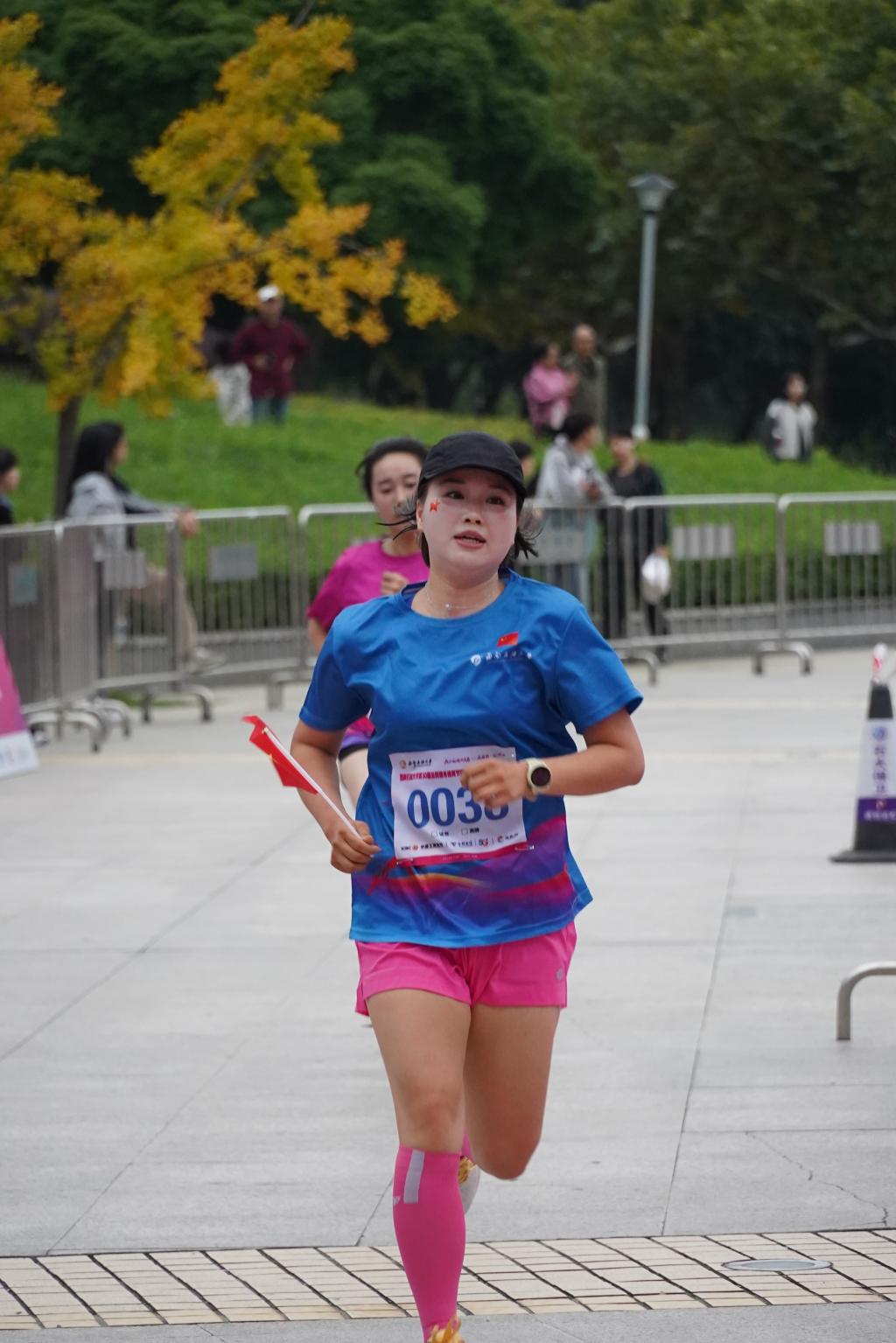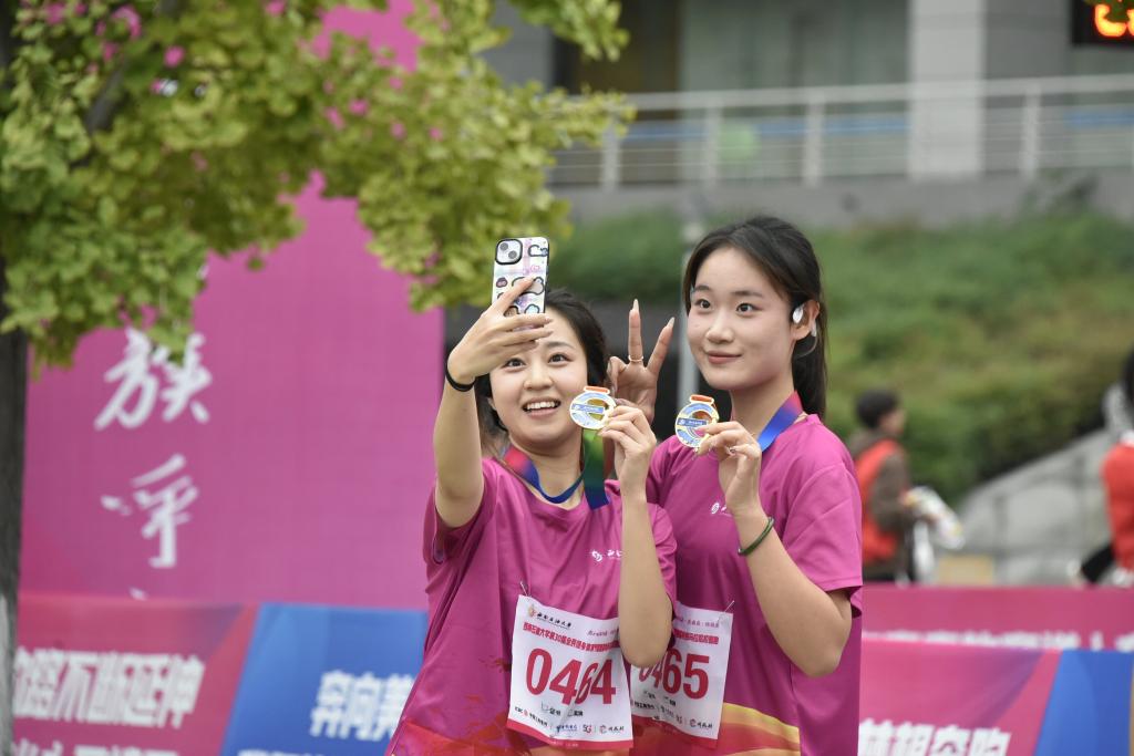 参赛师生校友青春洋溢,一路挥洒汗水,不断挑战自我。一呼一吸,一步一脚印,参赛者共同享受奔跑与风景交融的盛宴。“太棒啦!再坚持下!”路边观众和啦啦队员为参赛选手呐喊助威,志愿者为参赛者保驾护航,不少学生受气氛感染也加入到马拉松的队列。
